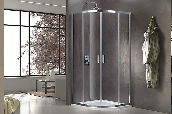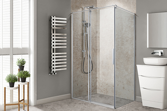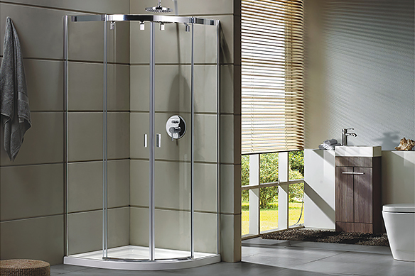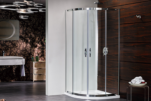 An attractive and elegant quadrant shower which is further enhanced by the sliding doors which glide open an