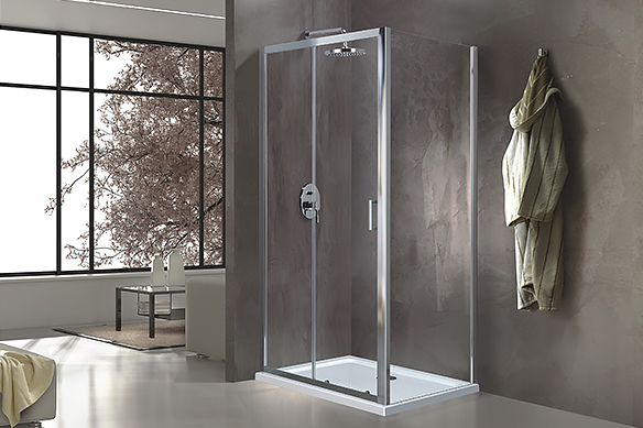 Shower enclosure withbrightaluminum frame,carefully styled detailswith sliding system on the top & botto