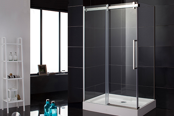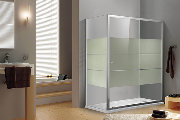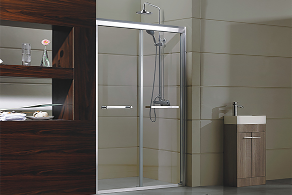 A shower enclosure with the sliding door,bright or matte silveraluminum frame,with sliding system on the top