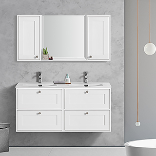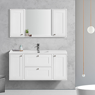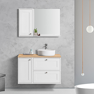 Simple, elegant and adaptable design,the biggest feature of DQ is Can be used with small cabinet.made of MDF and MFC,painting in white or grey color,MDF or resin countertop, with ceramic art basin ,perfect combination with mirror cabinet,suitable for all modern style bathrooms.