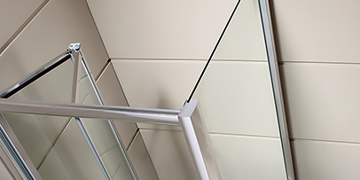 The elegantly shaped pivot door have been designed in the same minimalist style as the rest of the shower enclosure.