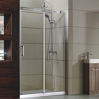 A bold new take on frameless sliding door enclosures where luxury meets modern, industrial design.Special smooth-gliding rollers adds a distinguished,customized look and an open and inviting silhouette.