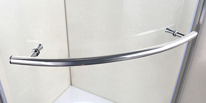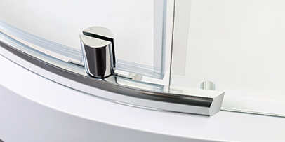 The elegantly shaped pivot door hinges have been designed in the same minimalist style as the rest of the shower enclosure.