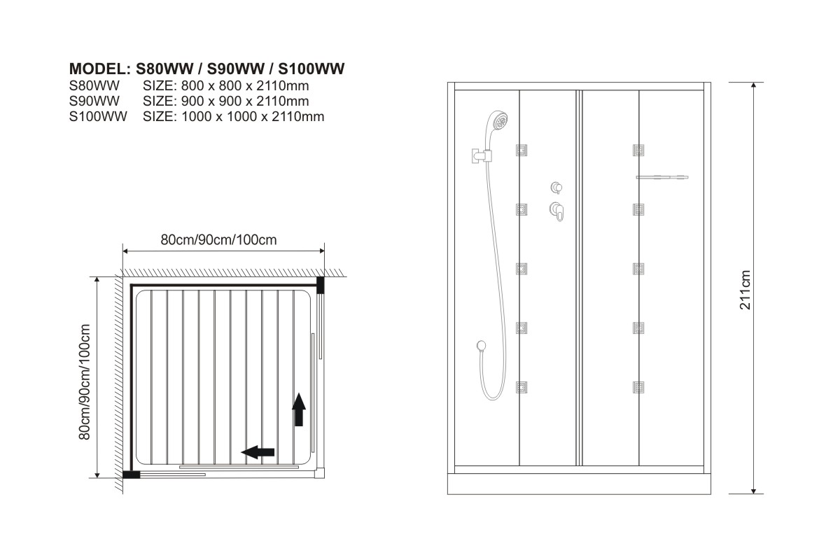 S100WW SIZE: 1000 x 1000 x 2110 mm