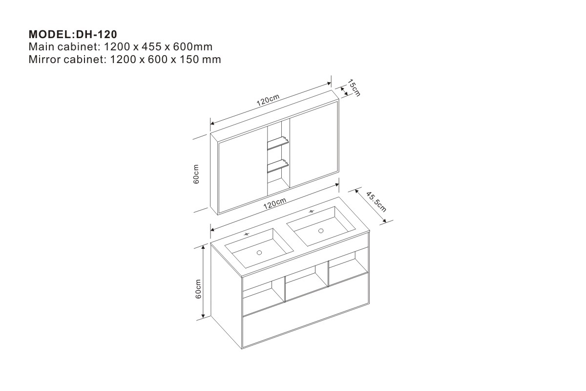 Main cabinet: 1200 x 455 x 600 mm