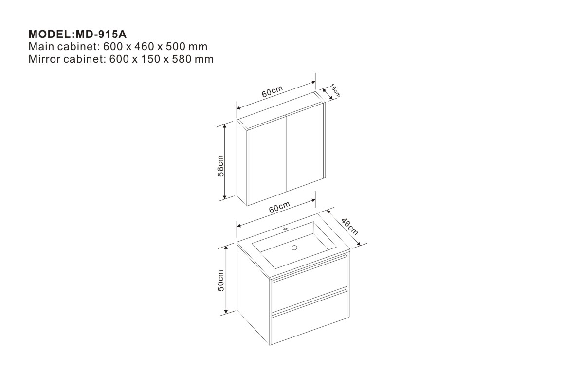 Mirror cabinet: 600 x 150 x 580 mm