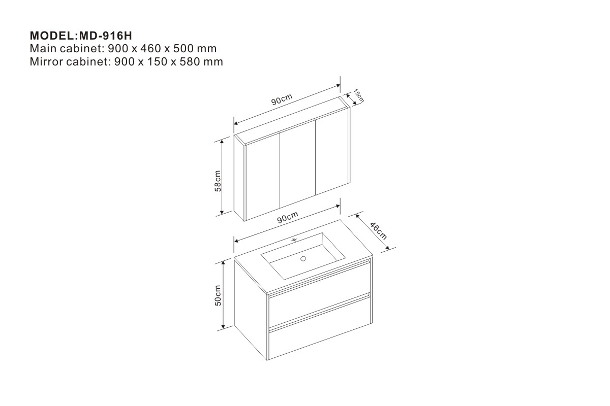Mirror cabinet: 900 x 150 x 580 mm