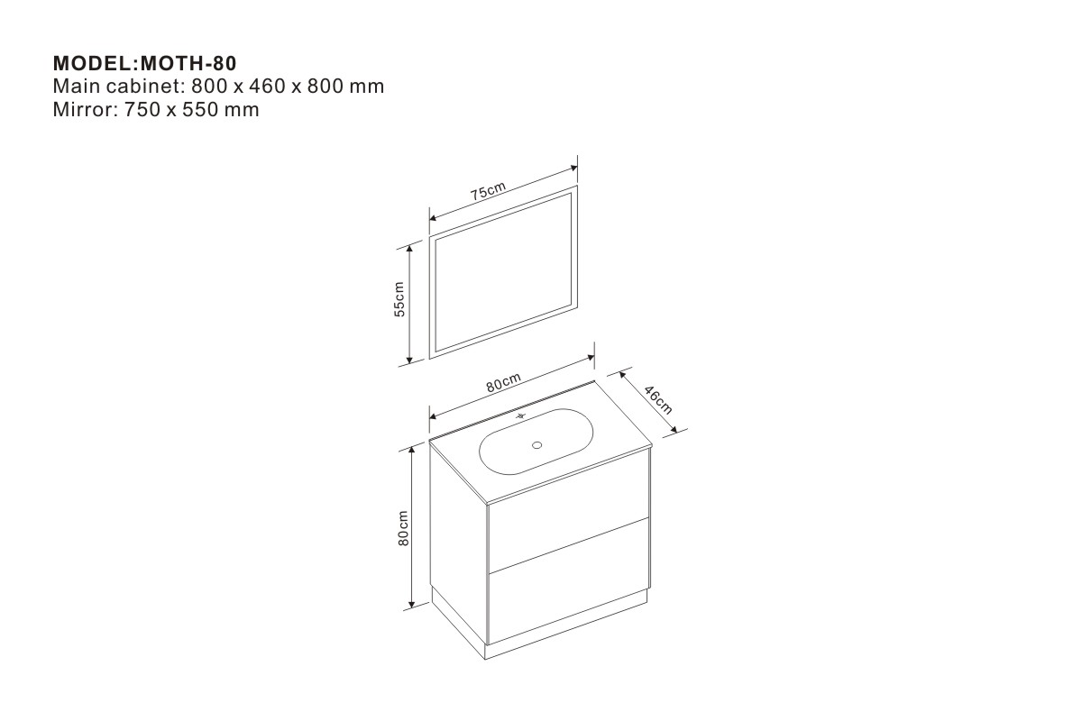 Main cabinet: 800 x 460 x 800 mm