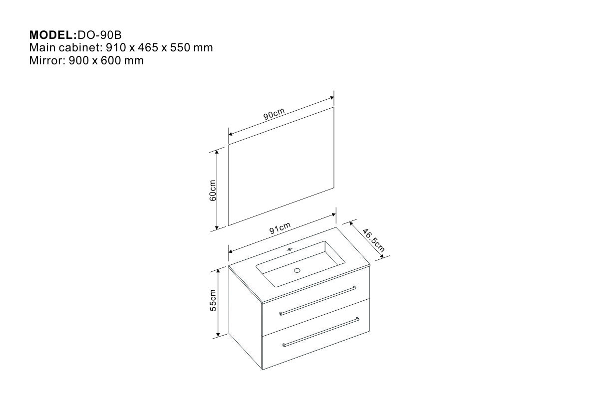 Main cabinet: 910 x 465 x 550 mm