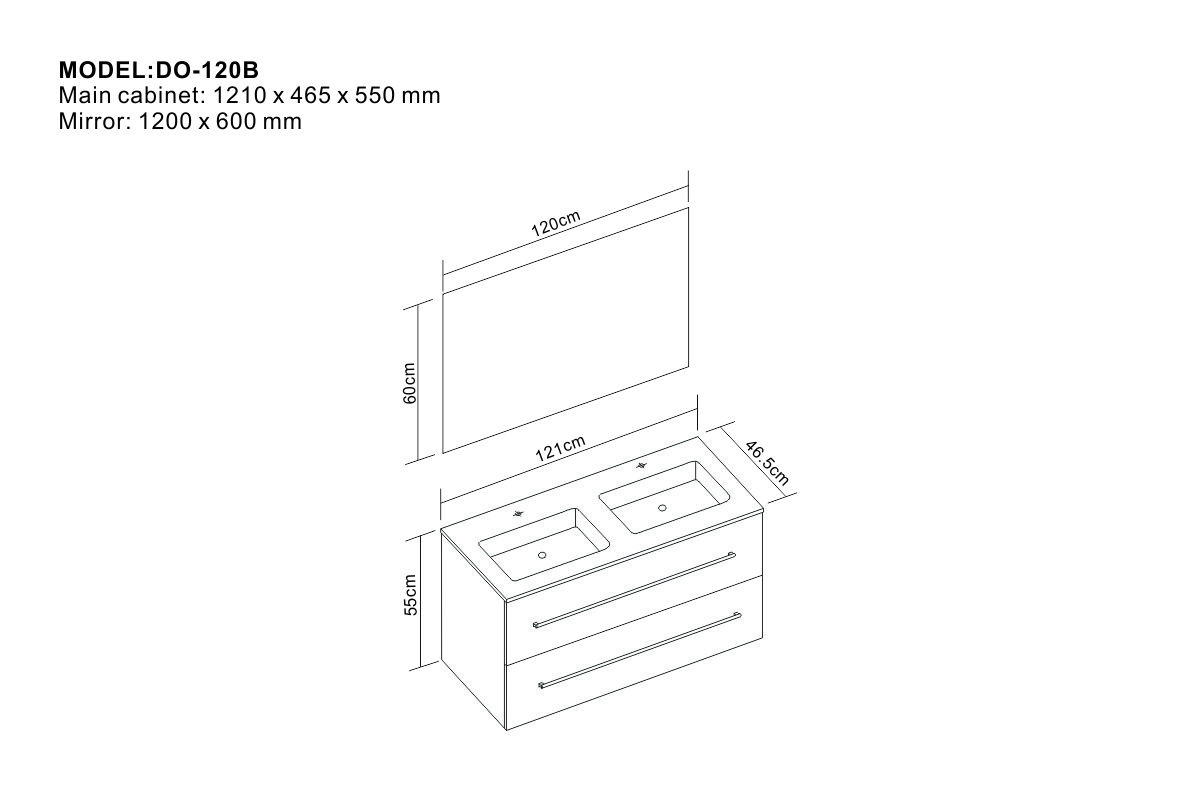 Main cabinet: 1210 x 465 x 550 mm