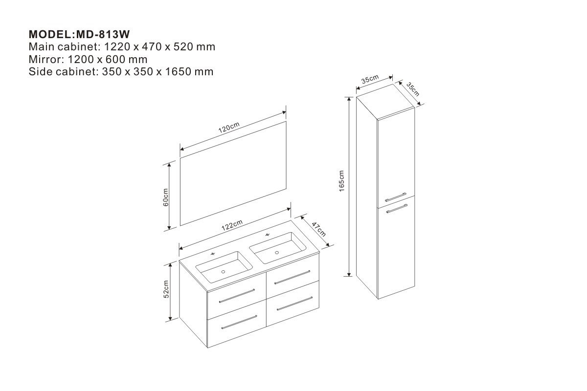 Main cabinet: 1220 x 470 x 520 mm