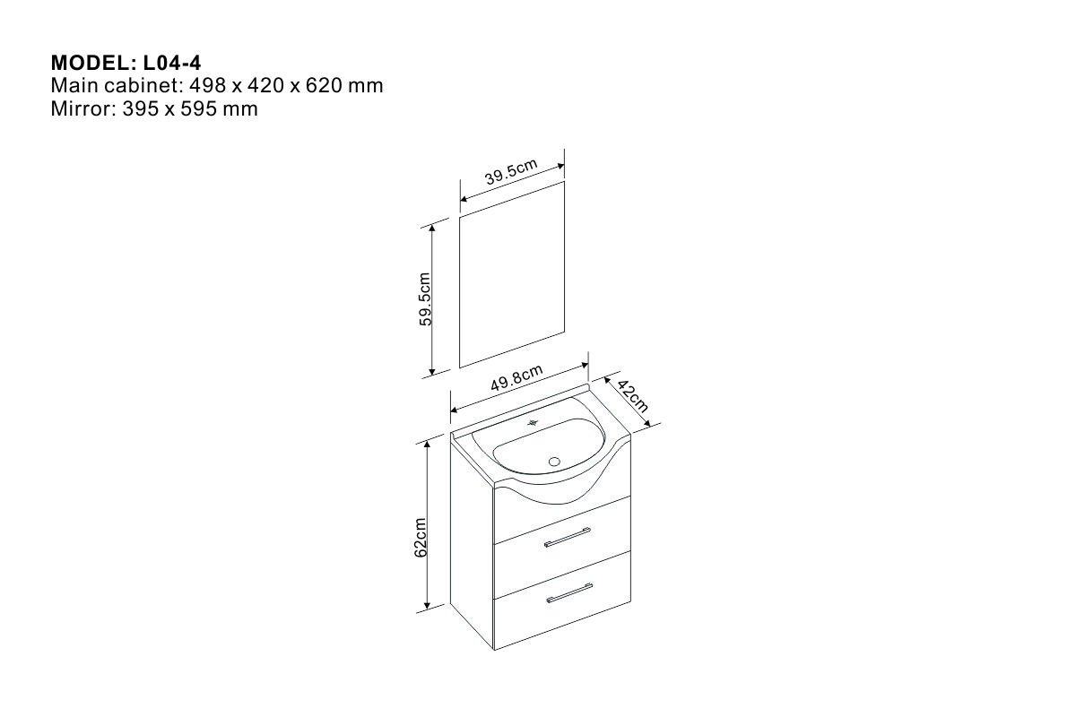 Main cabinet: 498 x 420 x 620 mm