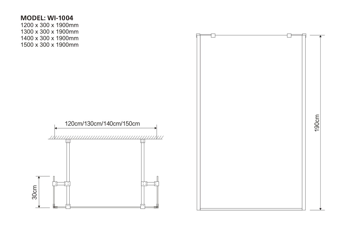 1400 x 300 x 1900mm          1500 x 300 x 1900mm