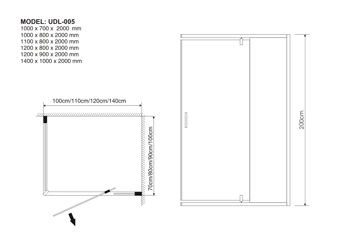 1000 x 700 x 2000 mm