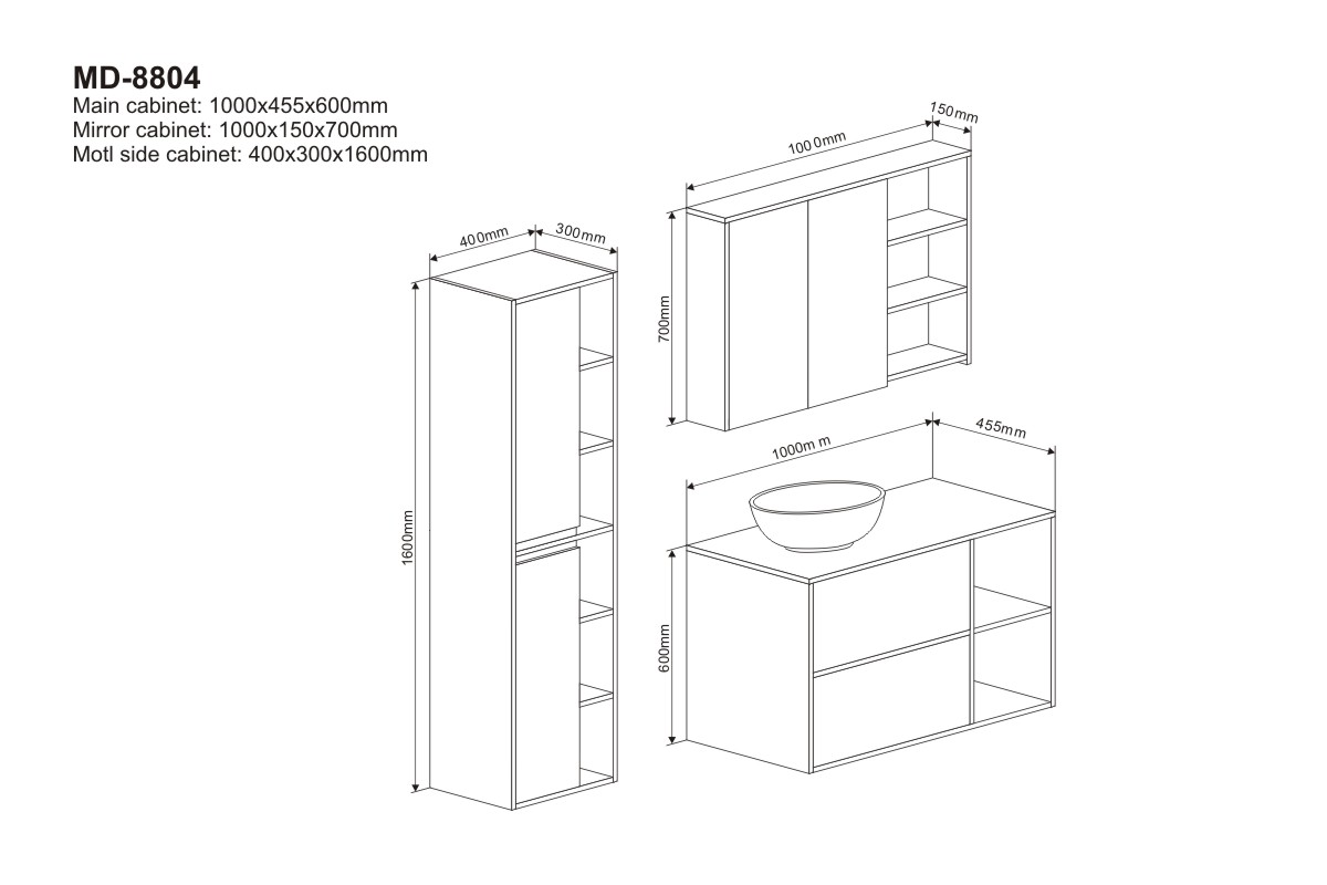 Main Cabinet: 1000*455*600 mm