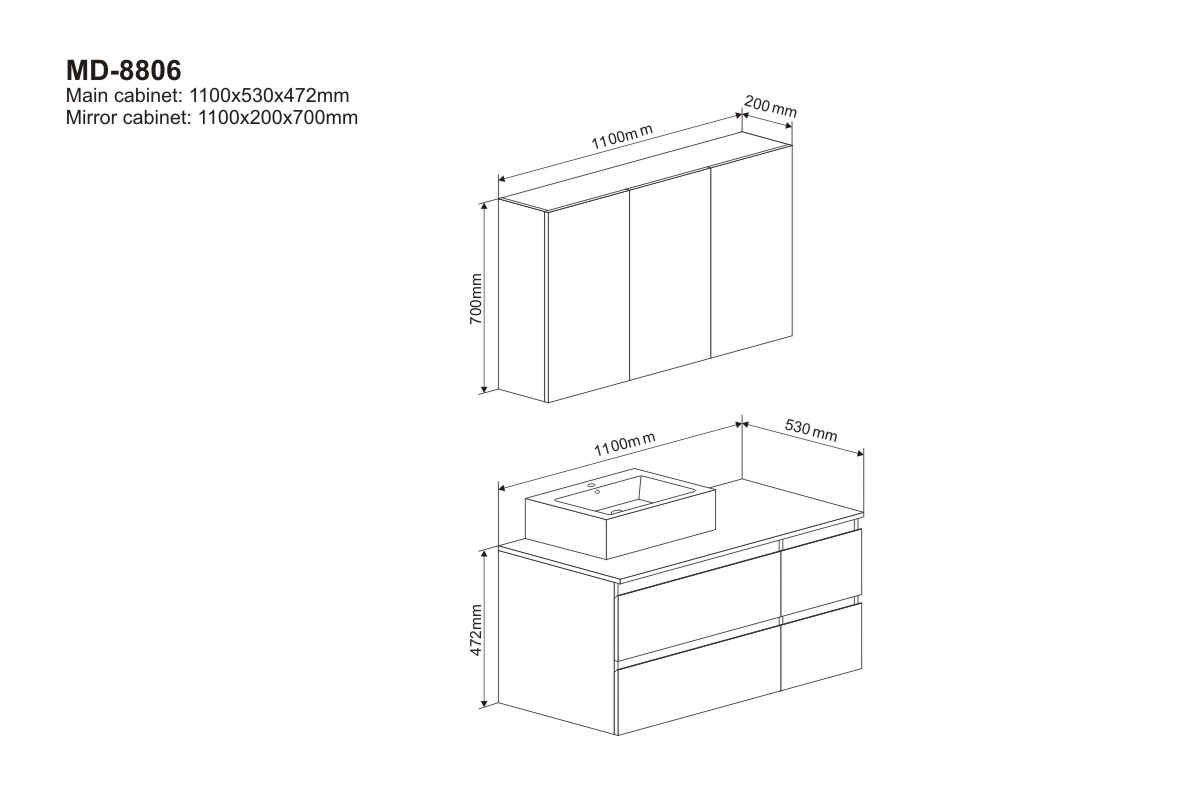 Mirror Cabinet: 1100*200*700 mm
