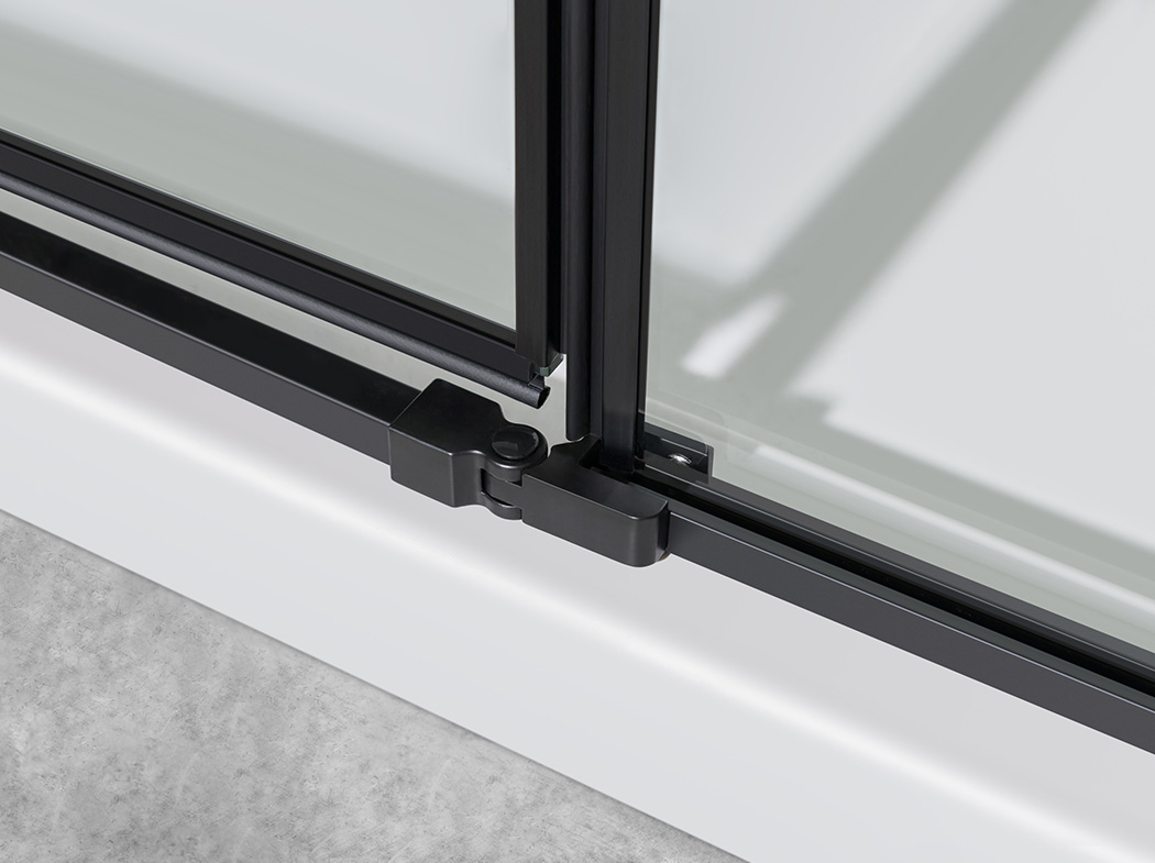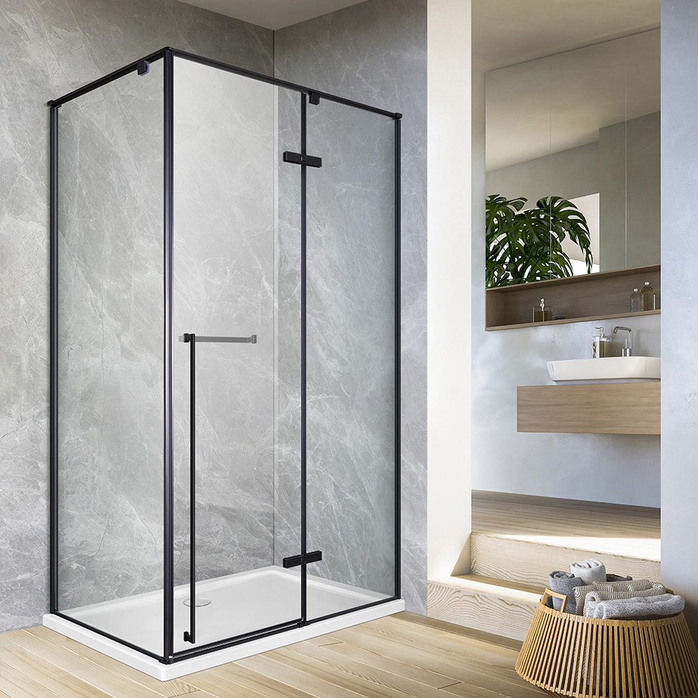 1 part hinged door + 1 part fixed glass + 1 part side panel |
