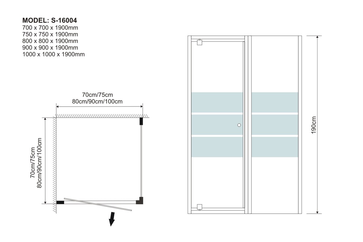 800 x 800 x 1900 mm   /   900 x 900 x 1900 mm