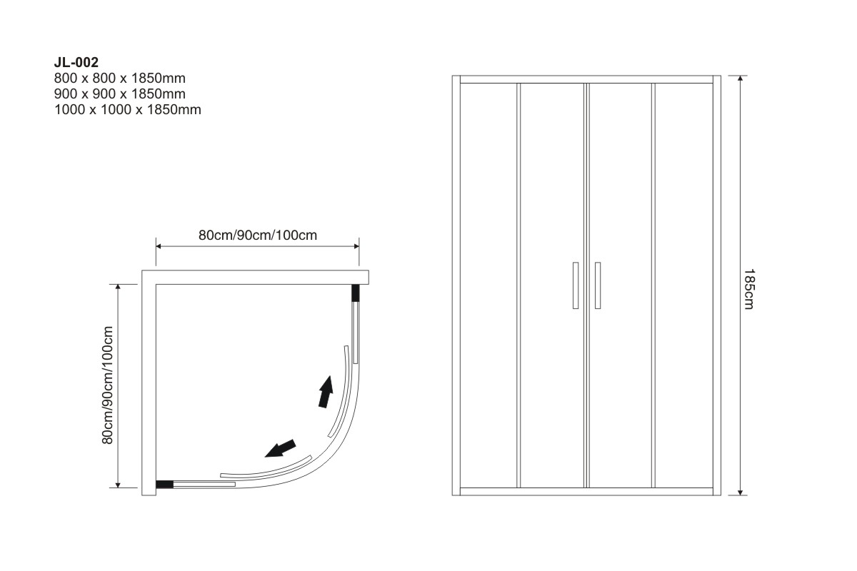 1000 x 1000 x 1850 mm