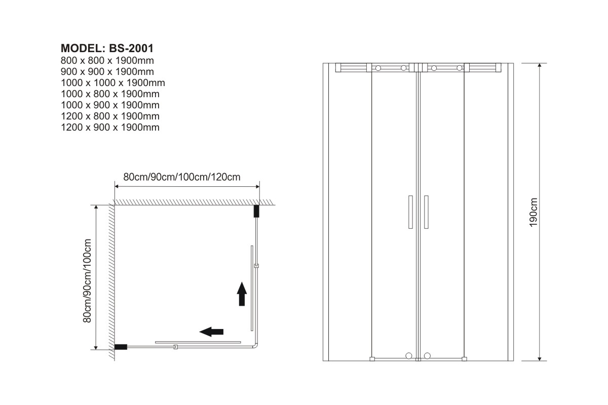 1000 x 1000 x 1900 mm