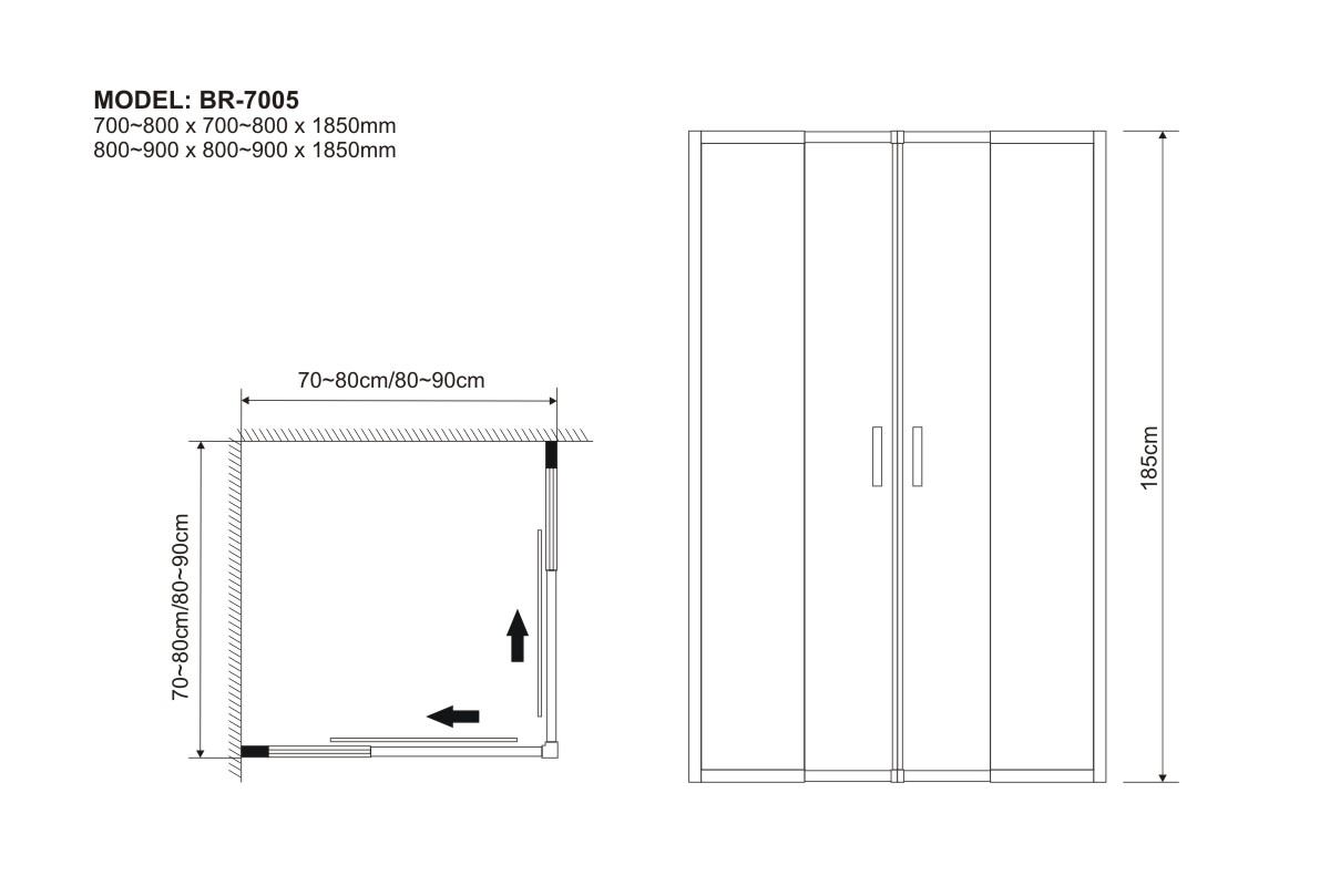 800~900 x 800~900 x 1850 mm