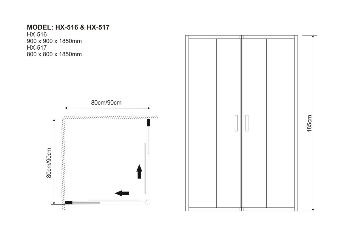 HX-516 900 x 900 x 1850 mm