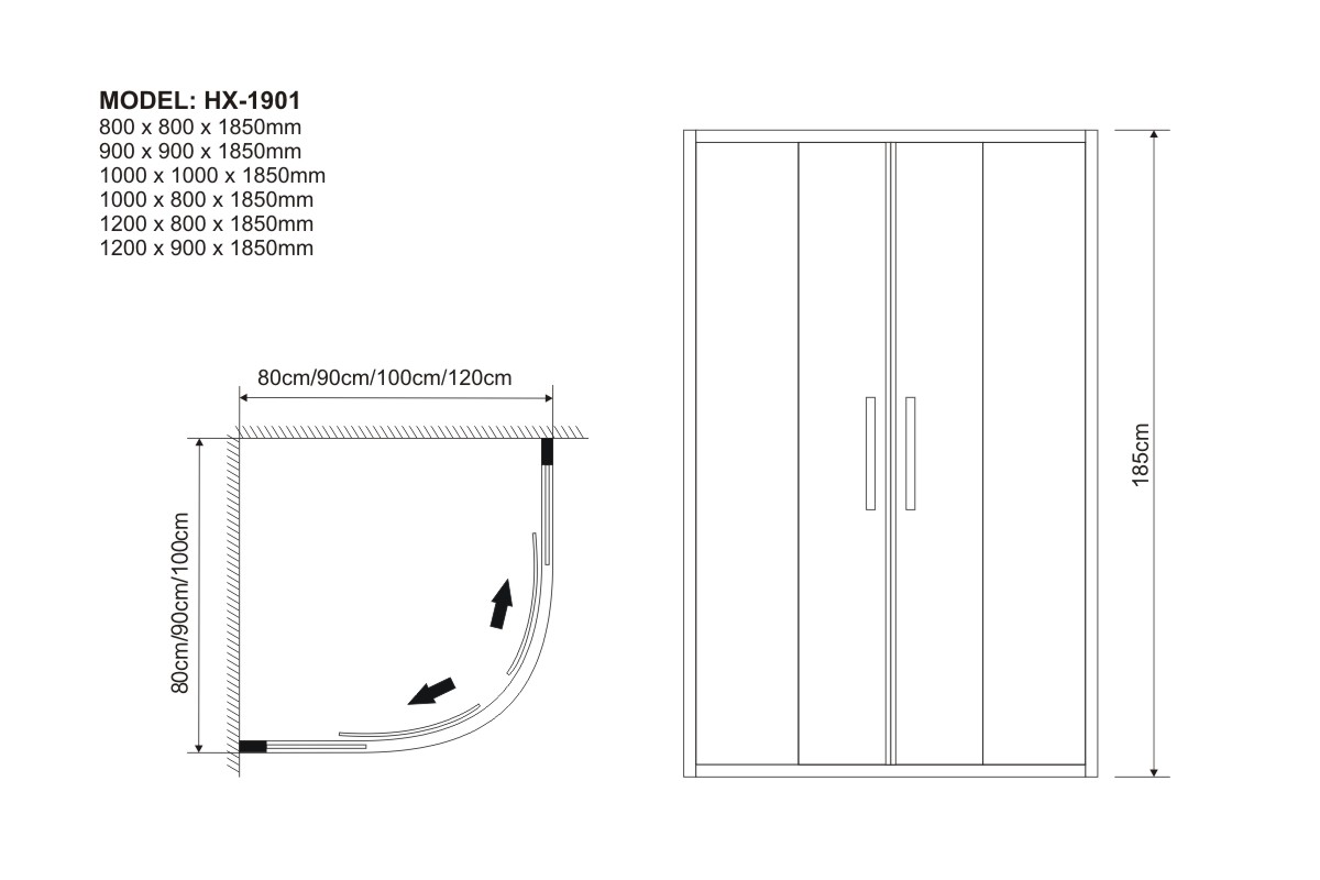 900 x 900 x 1850 mm