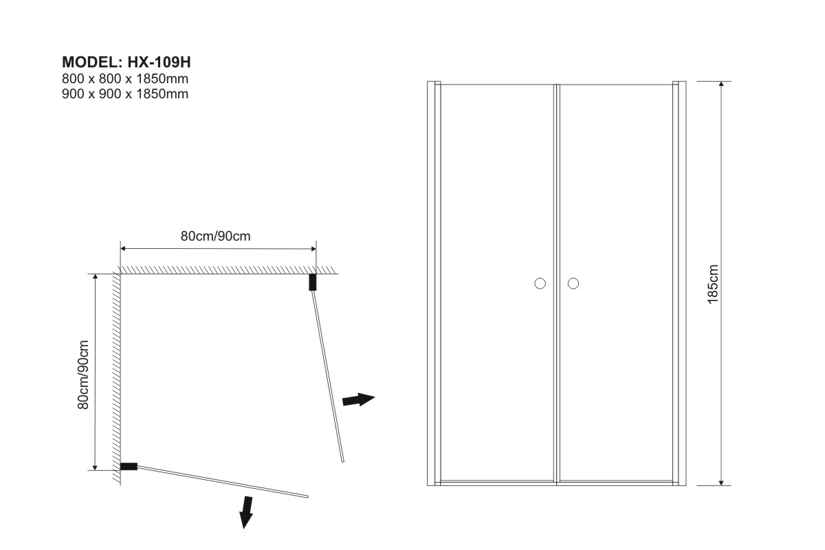 900 x 900 x 1850 mm