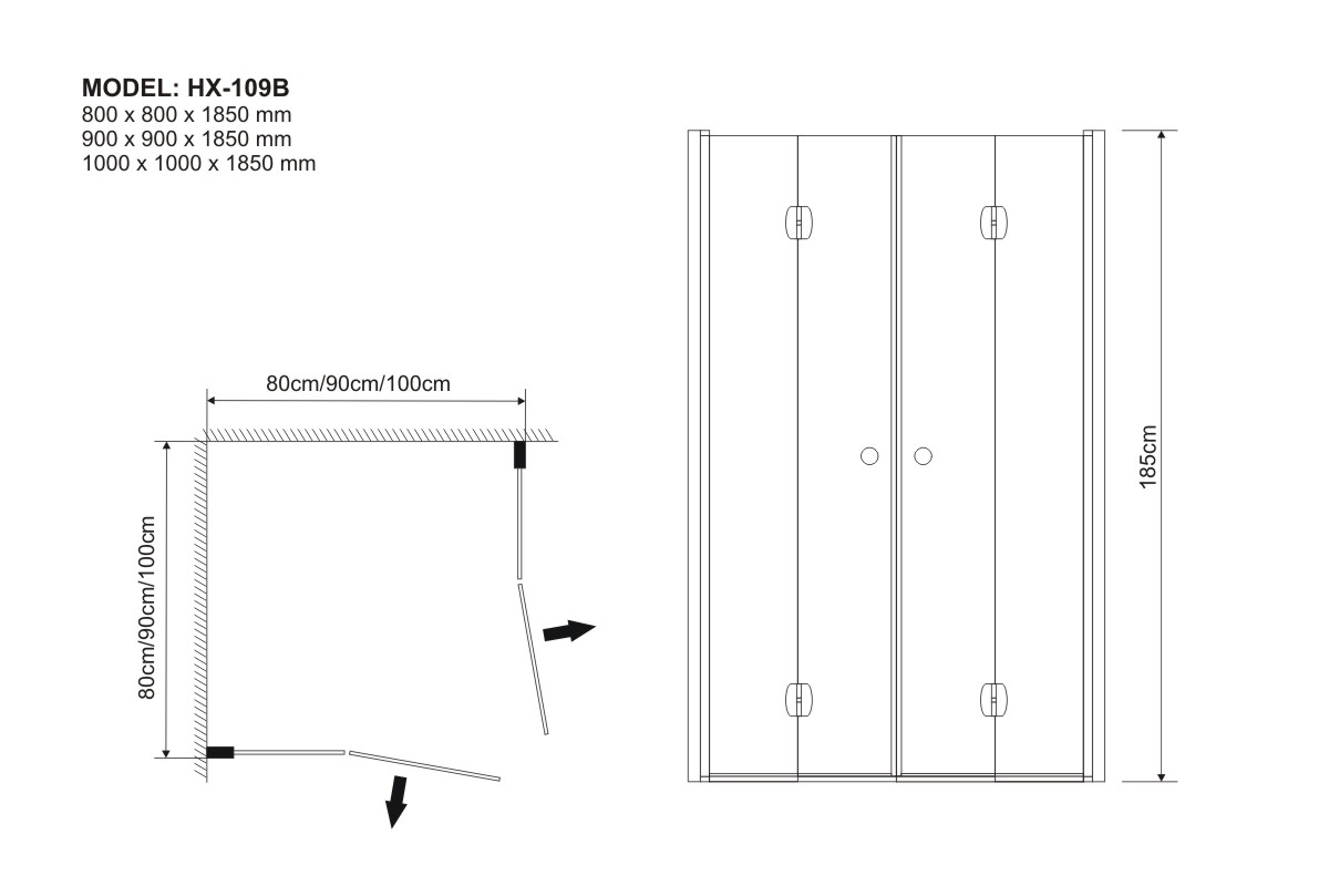 1000 x 1000 x 1850 mm