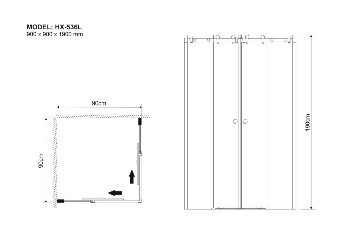 900 x 900 x 1900 mm