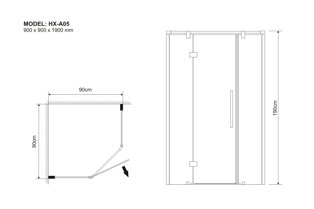 900 x 900 x 1900 mm