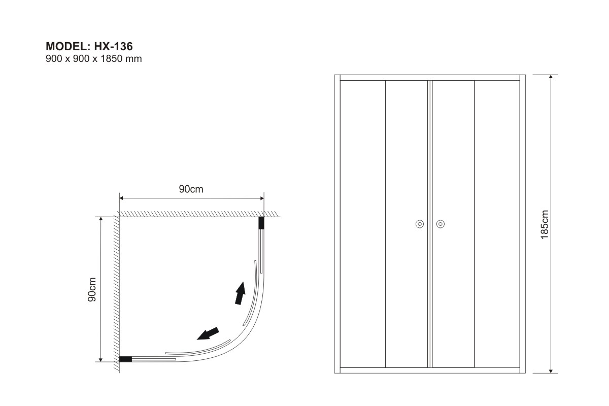 900 x 900 x 1850 mm