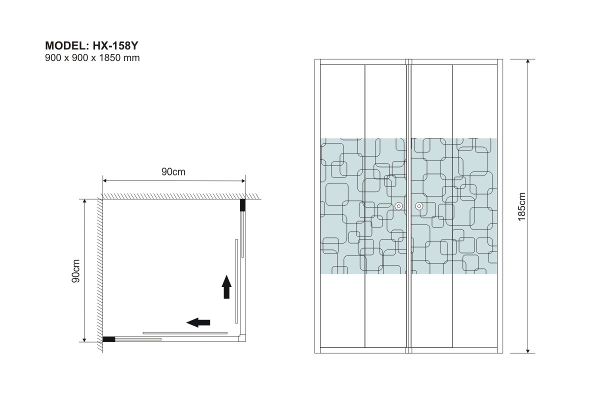 900 x 900 x 1850 mm