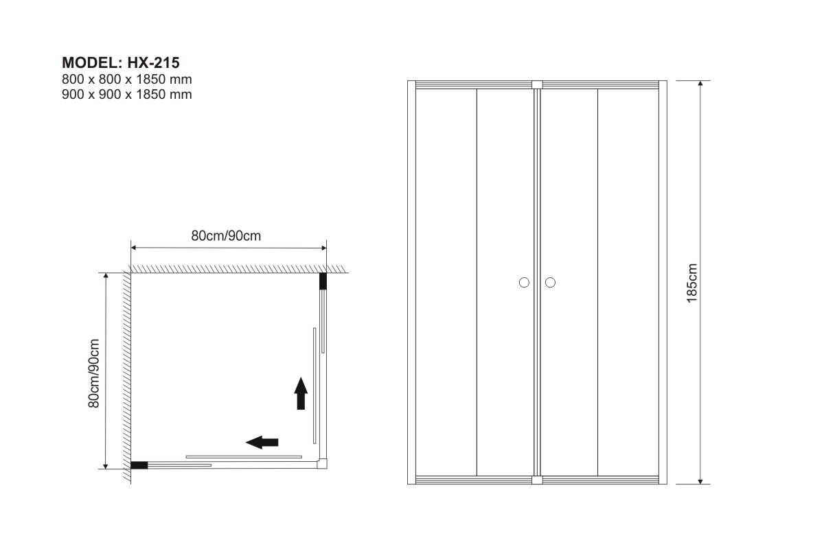 800 x 800 x 1850 mm