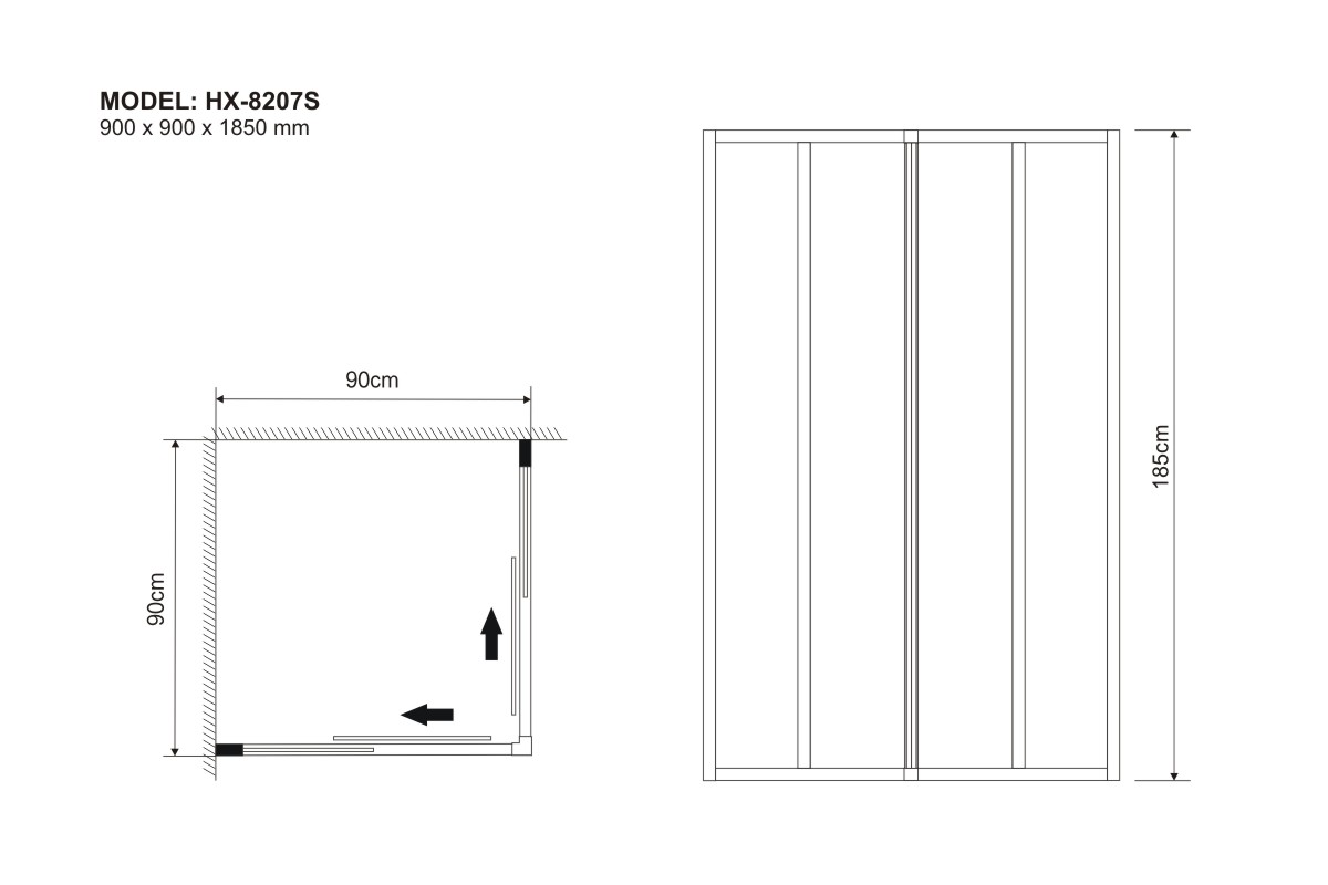 900 x 900 x 1850 mm