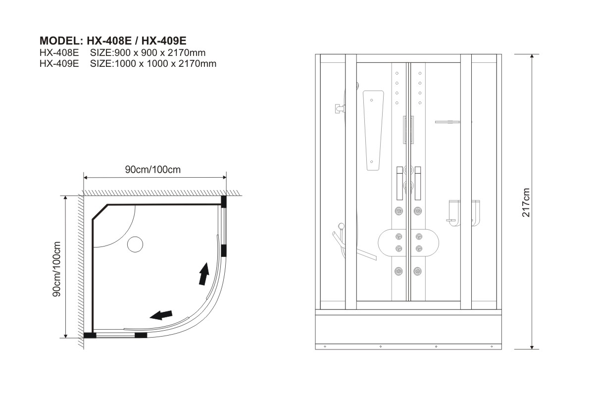 HX-408E SIZE: 900 x 900 x 2170 mm